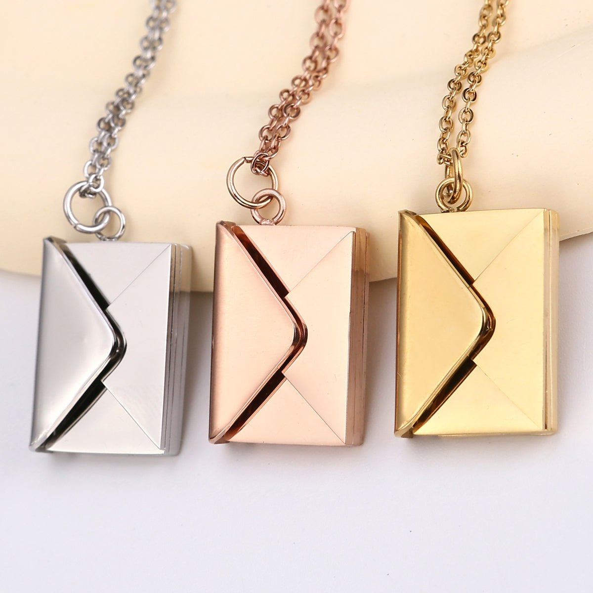 Drehen Sie die Rose und enthüllen Sie eine handgemachte 316L Edelstahl Halskette mit einer 18k Goldausführung.