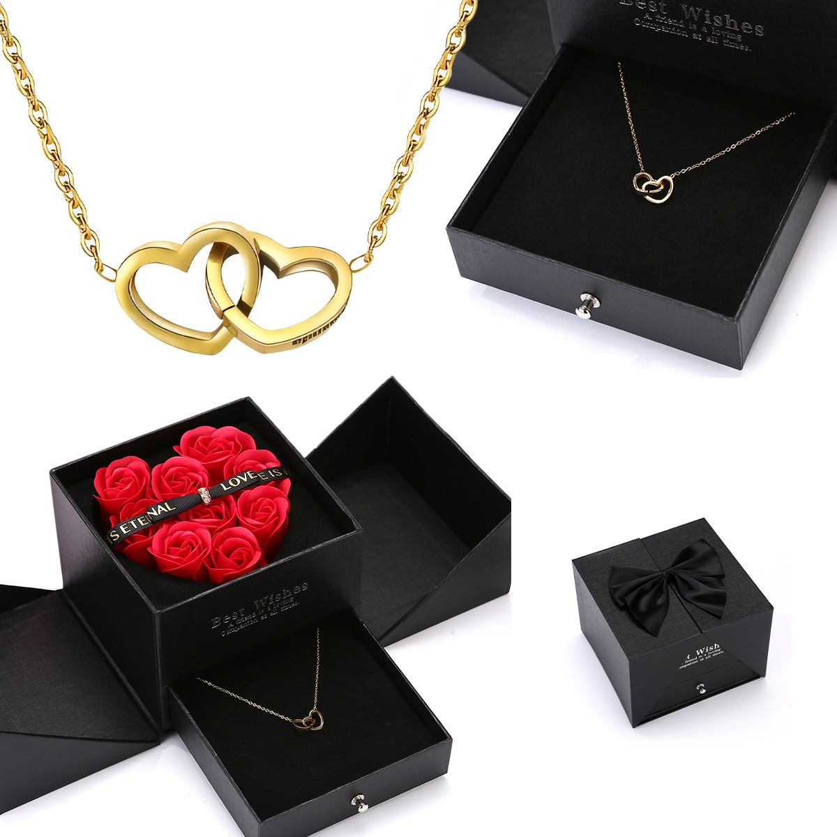 Ewige Rosenbox zum Aufklappen - Gravierte Halskette & echte Rosen