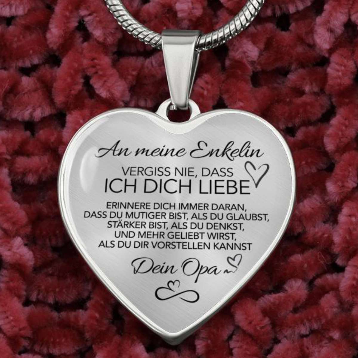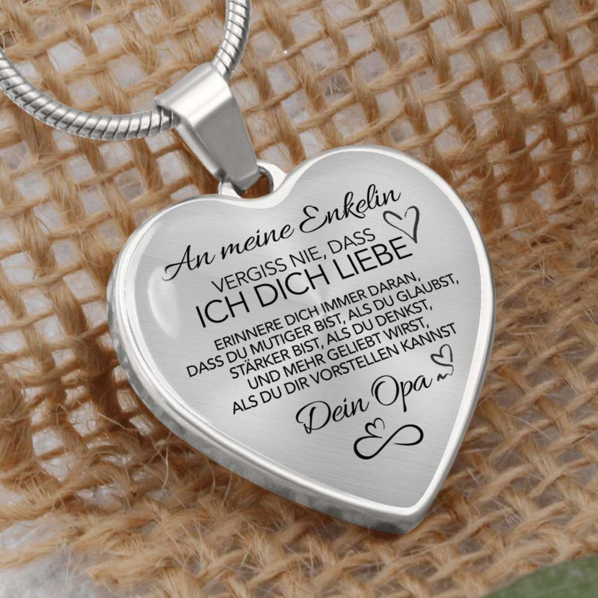 Wir von Dein Liebesmoment wollen mit dieser Halskette und der liebevollen Notiz darin, die unendliche Liebe zu Ihrer Enkelin vermitteln.