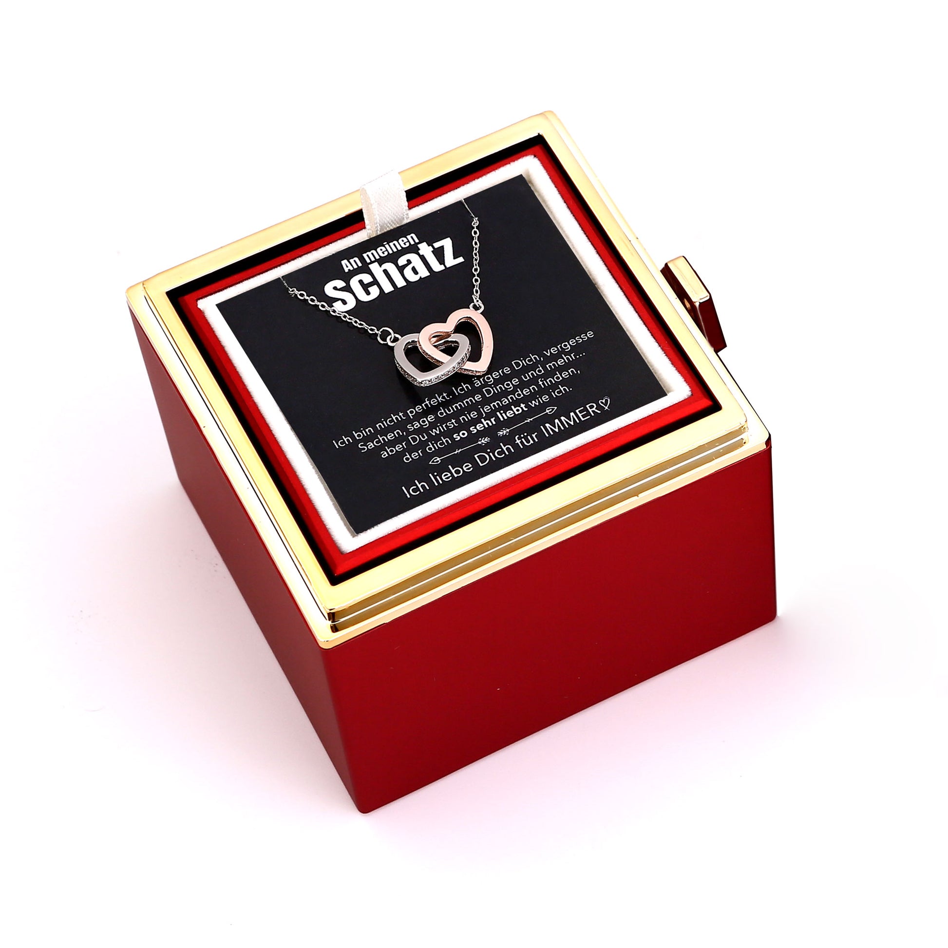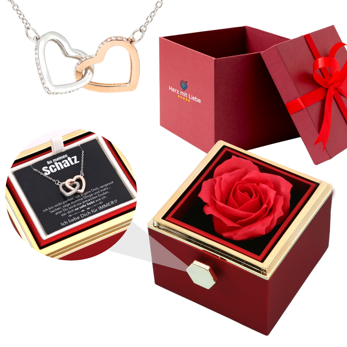 Ewige Rosenbox – mit Doppelherz Halskette, Liebesnotiz und echter Rose