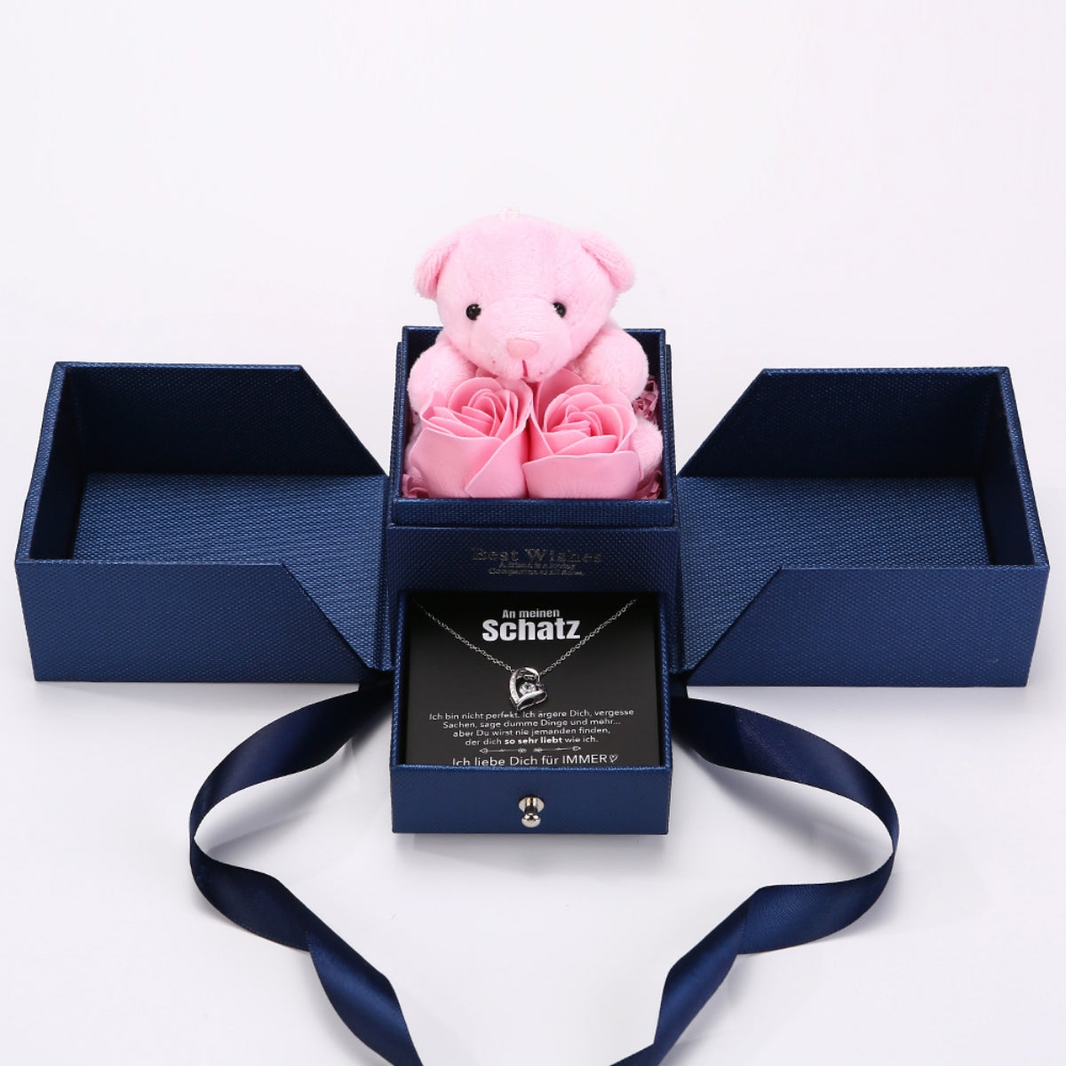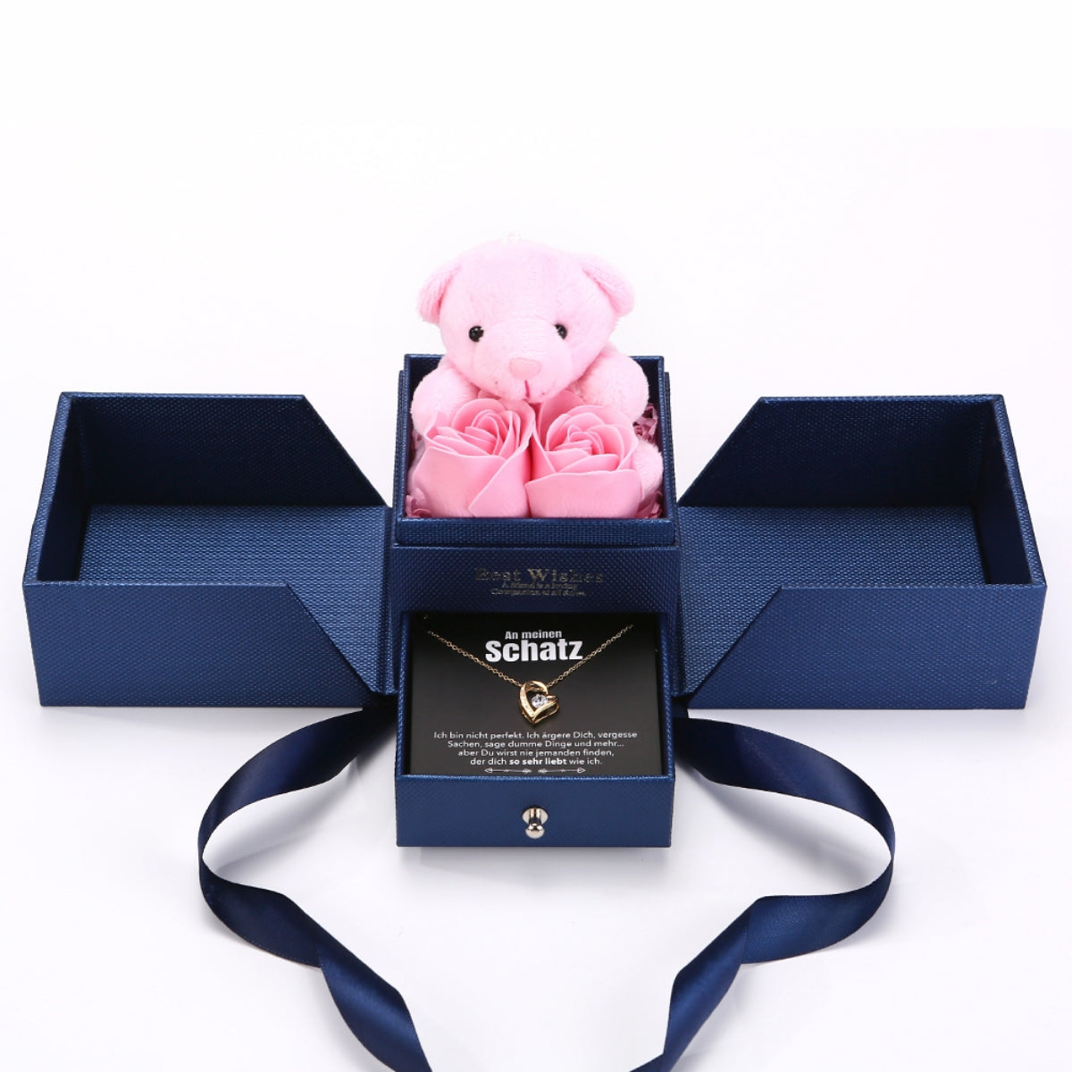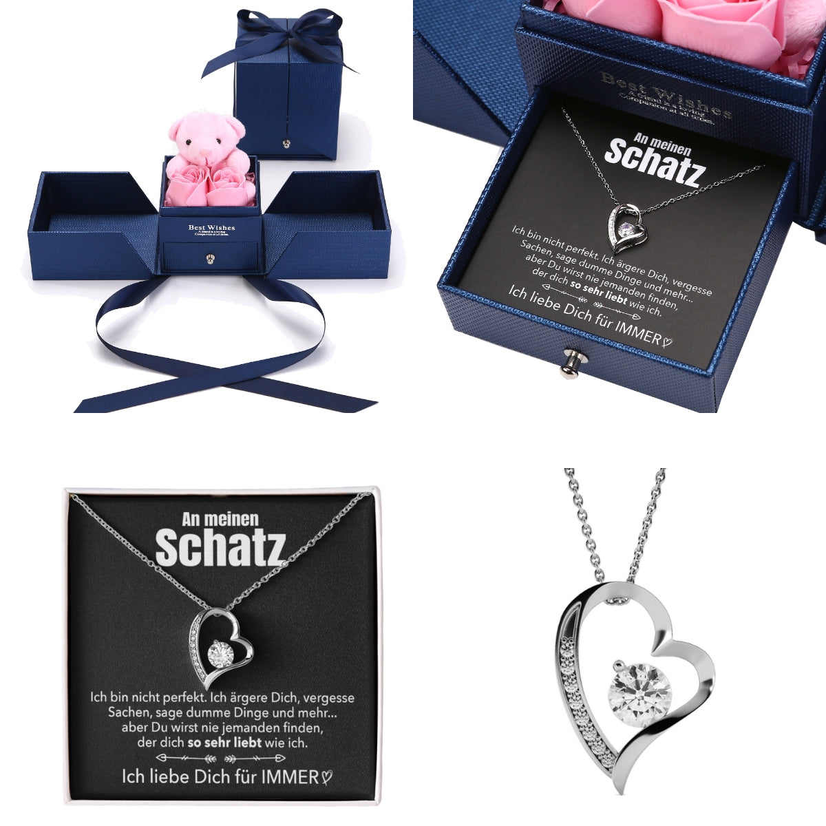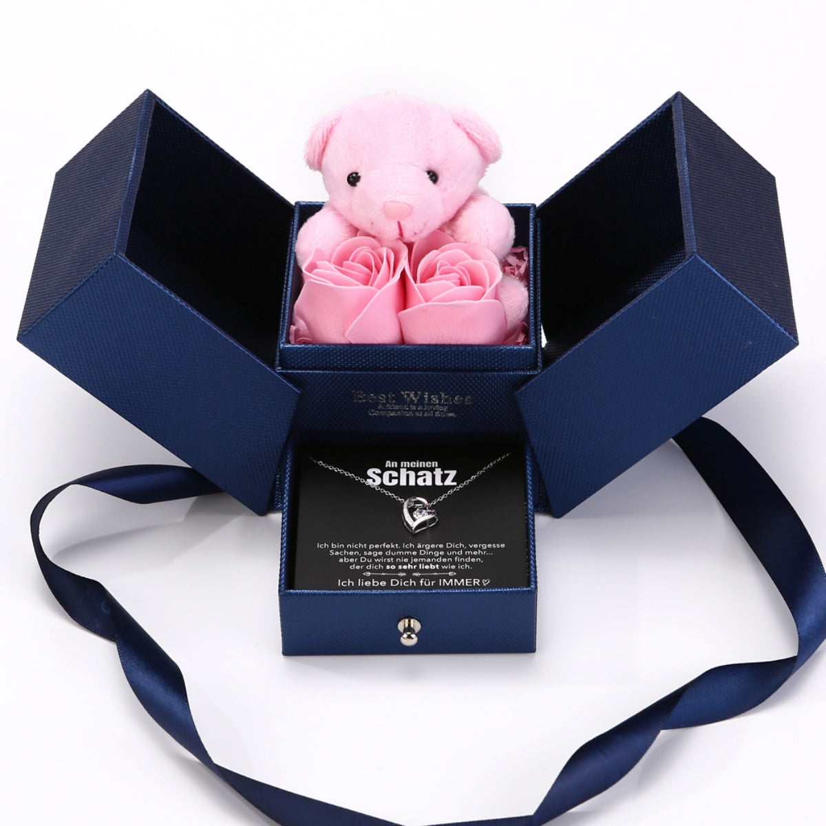 Rosenbär Box - 14k Weißgold Ausführung Herz Halskette - An meinen Schatz