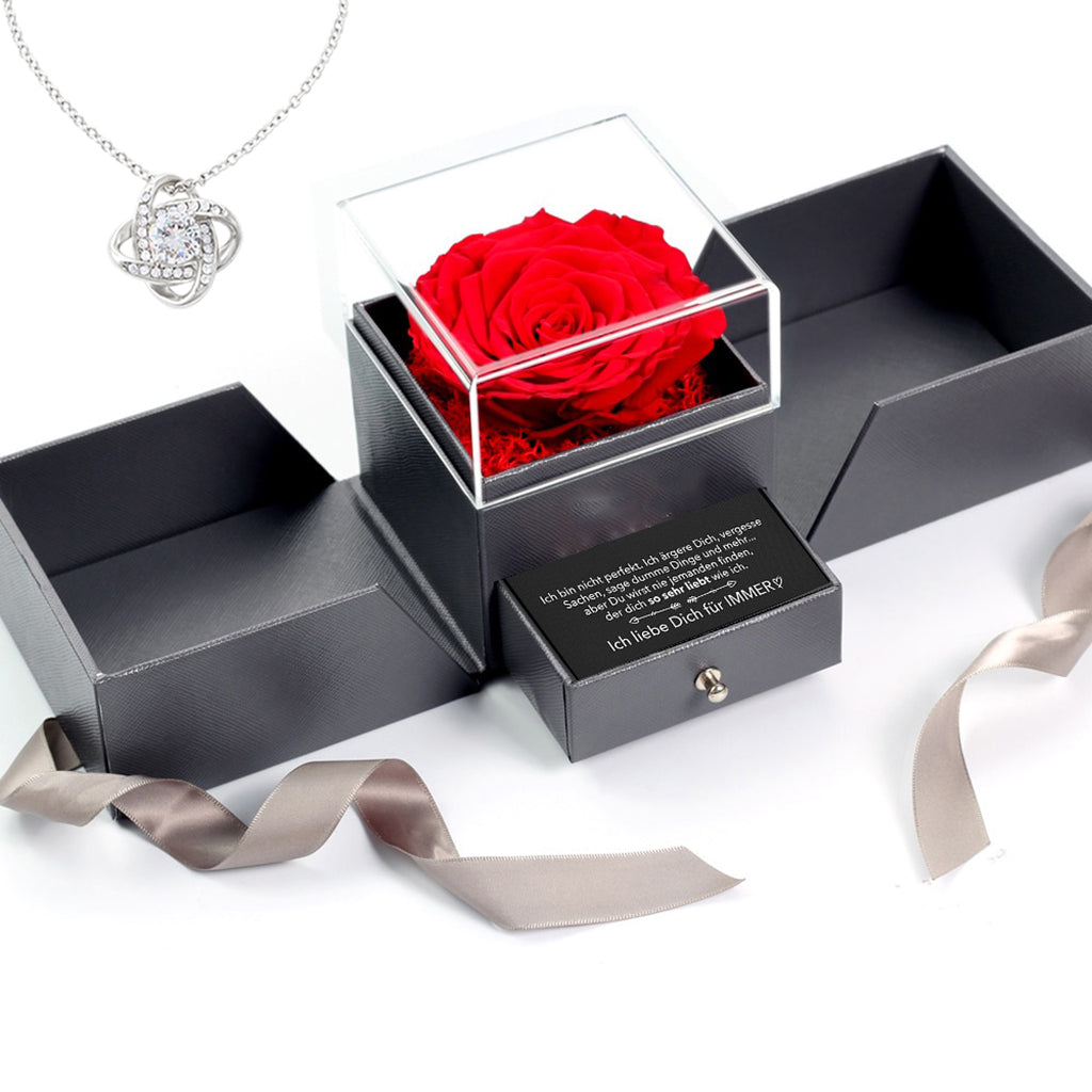 Rosenbox - Weißgold Ausführung Liebesknoten Halskette - An meinen Schatz