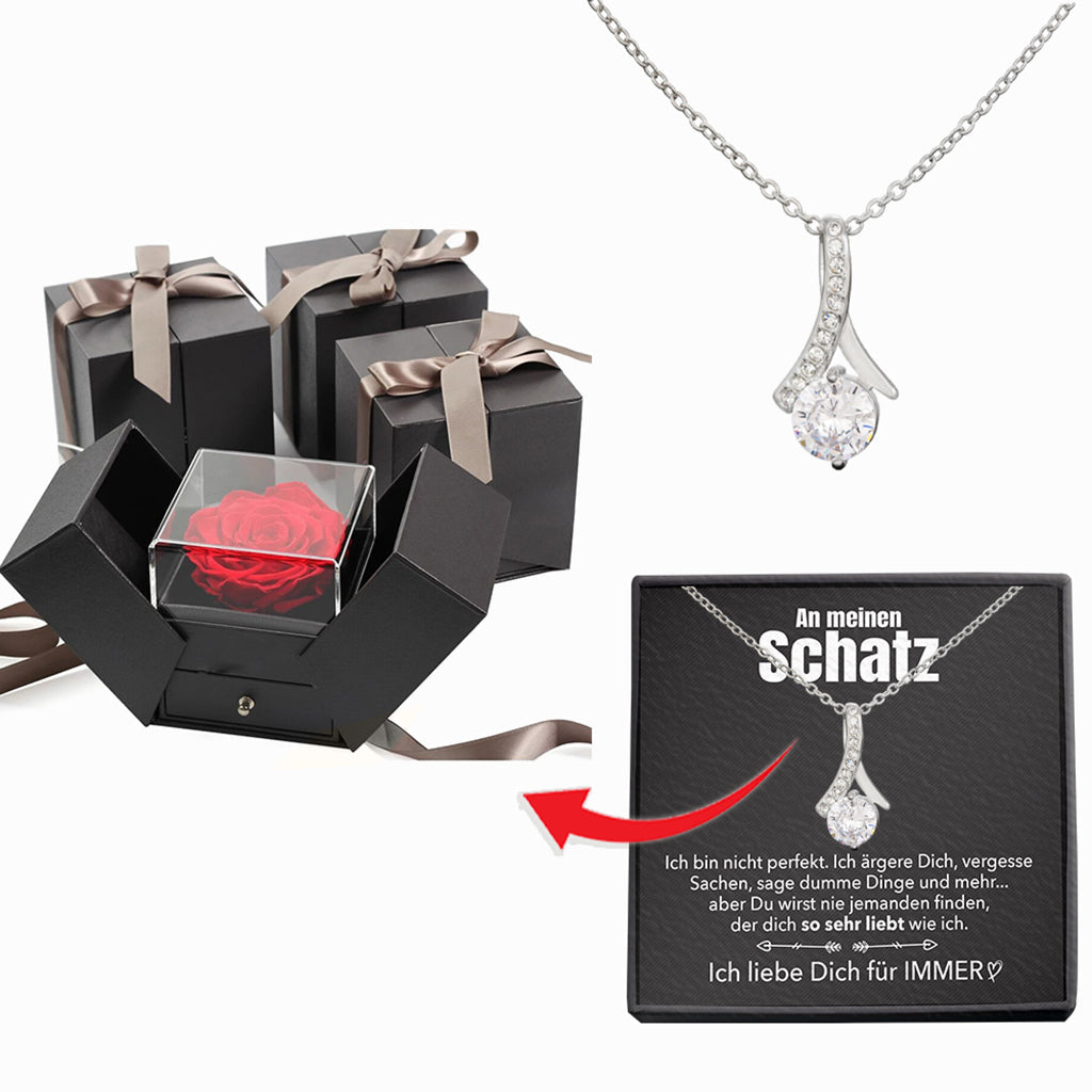 Rosenbox - Weißgold Ausführung Stil-Halskette - An meinen Schatz
