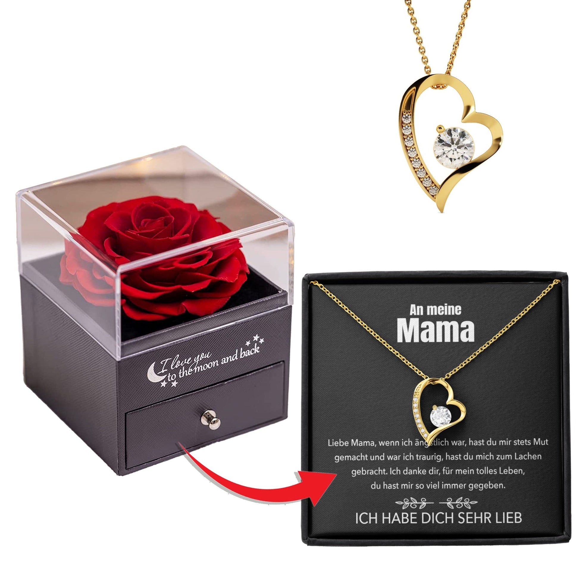 An meine Mama - Rosenbox - Weißgold Ausführung Herz Halskette