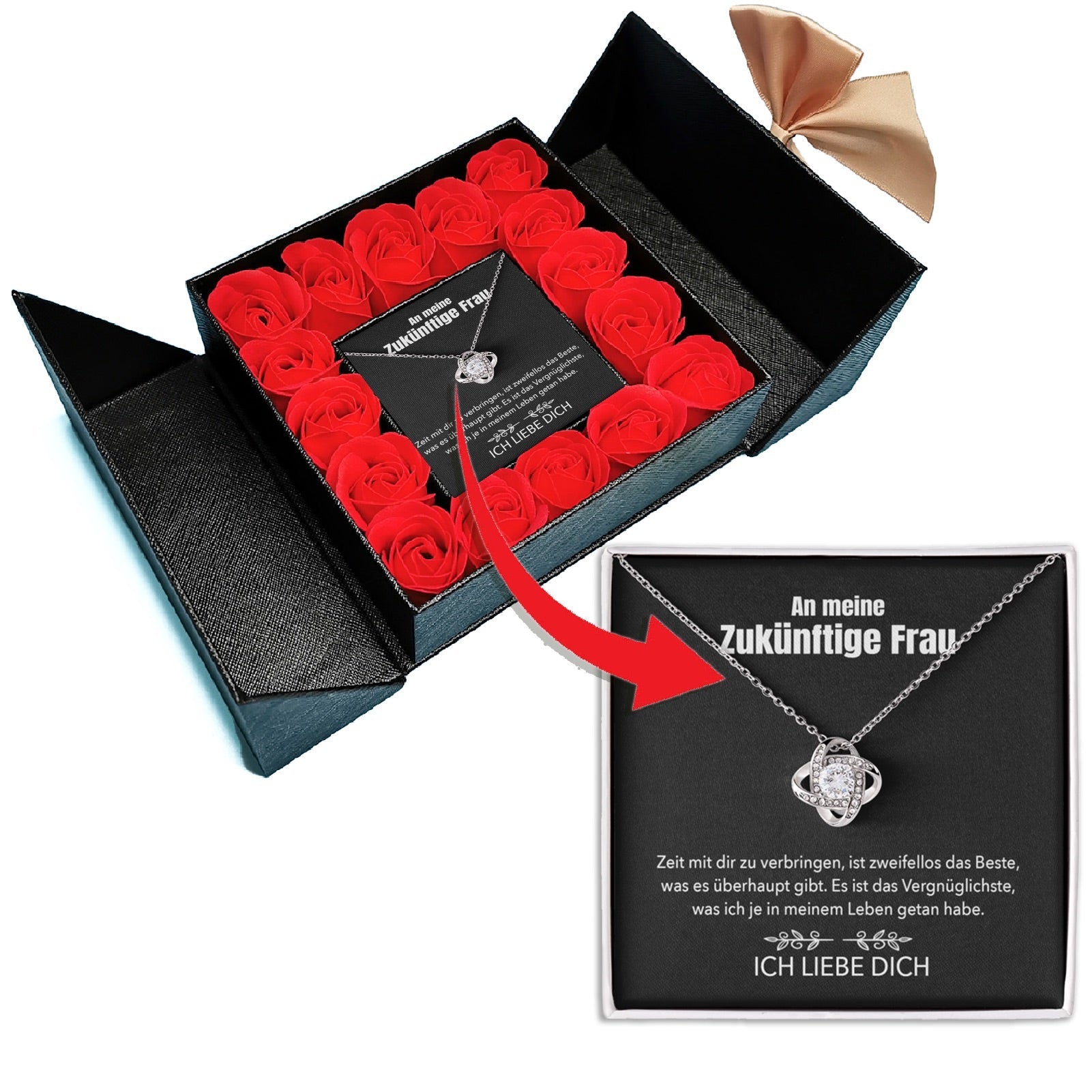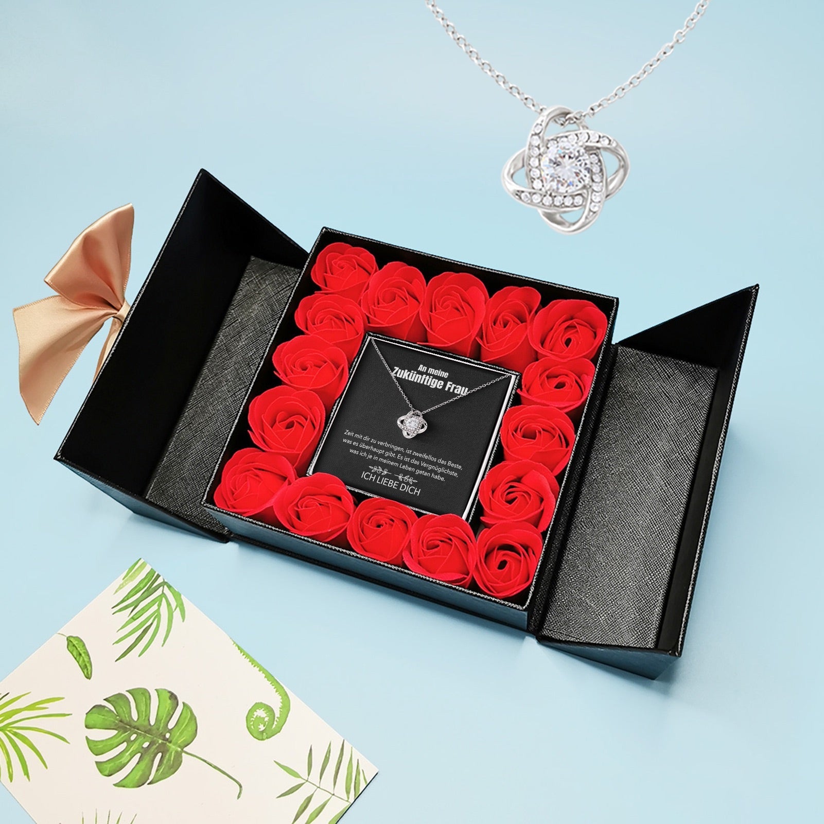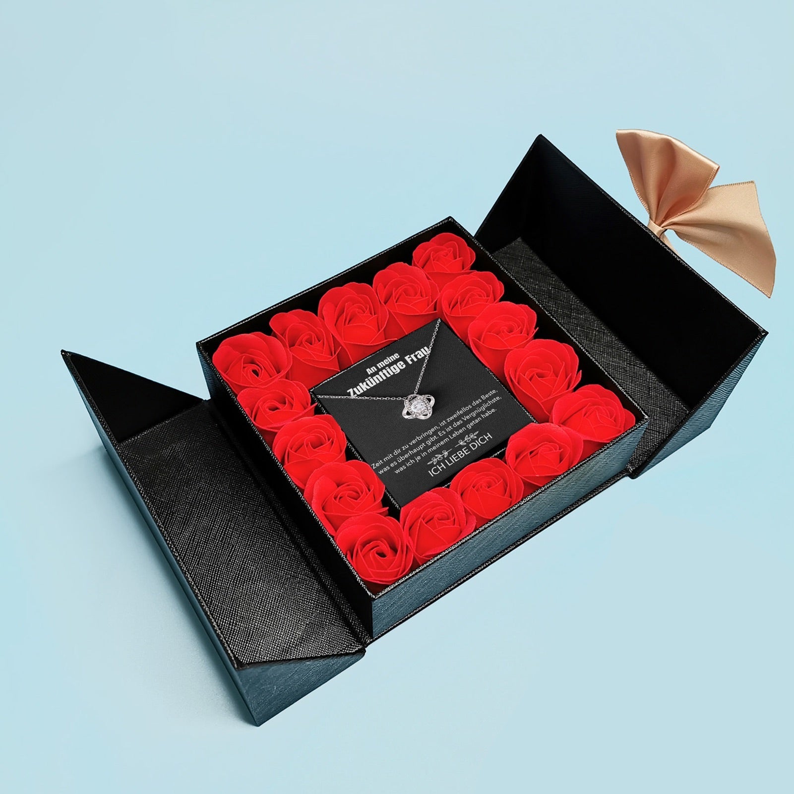 Aufklappbare Rosenbox mit 14k Weißgold Ausführung Halskette - An meine zukünftige Frau